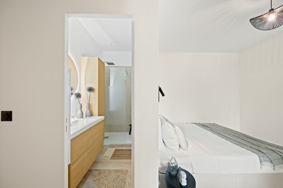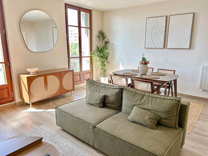 Rénovation d'un appartement complet située en plein cœur de Toulon pour de la location AIRBNB, dans un style épuré et méditerranéen.
