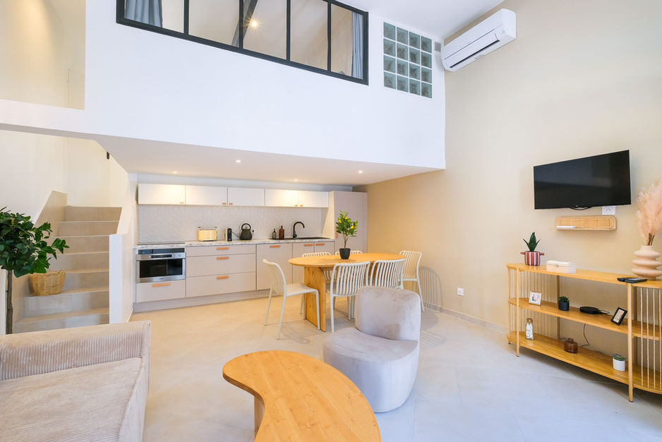 Rénovation d'une maison complète situé en plein cœur de Marseille pour de la location AIRBNB, dans un style très sobre, un appartement fonctionnel.